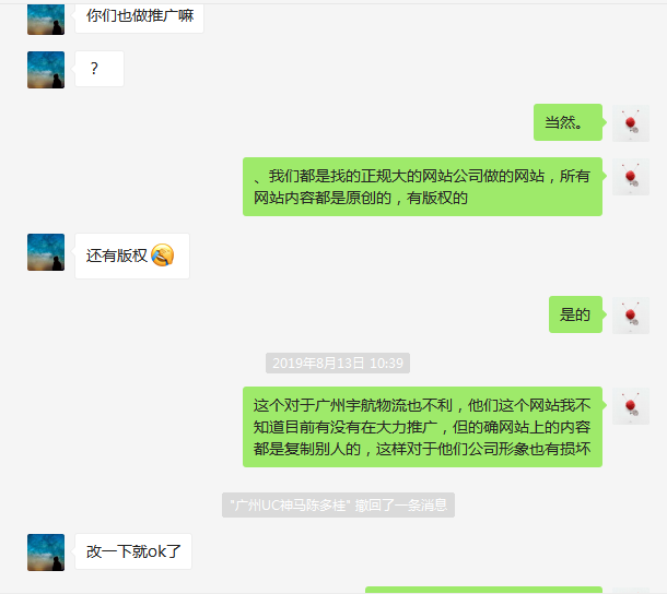 3.经我司工作人员再三沟通,告知他们已侵犯我司的合法权益,对方承诺会修改网站内容,但一直未修改。